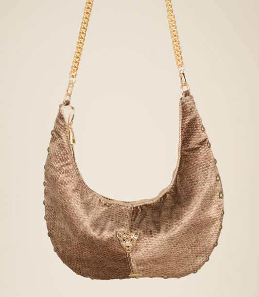 Reptilia Bag Dorada Standard Cadena Plata y Tag Rojo