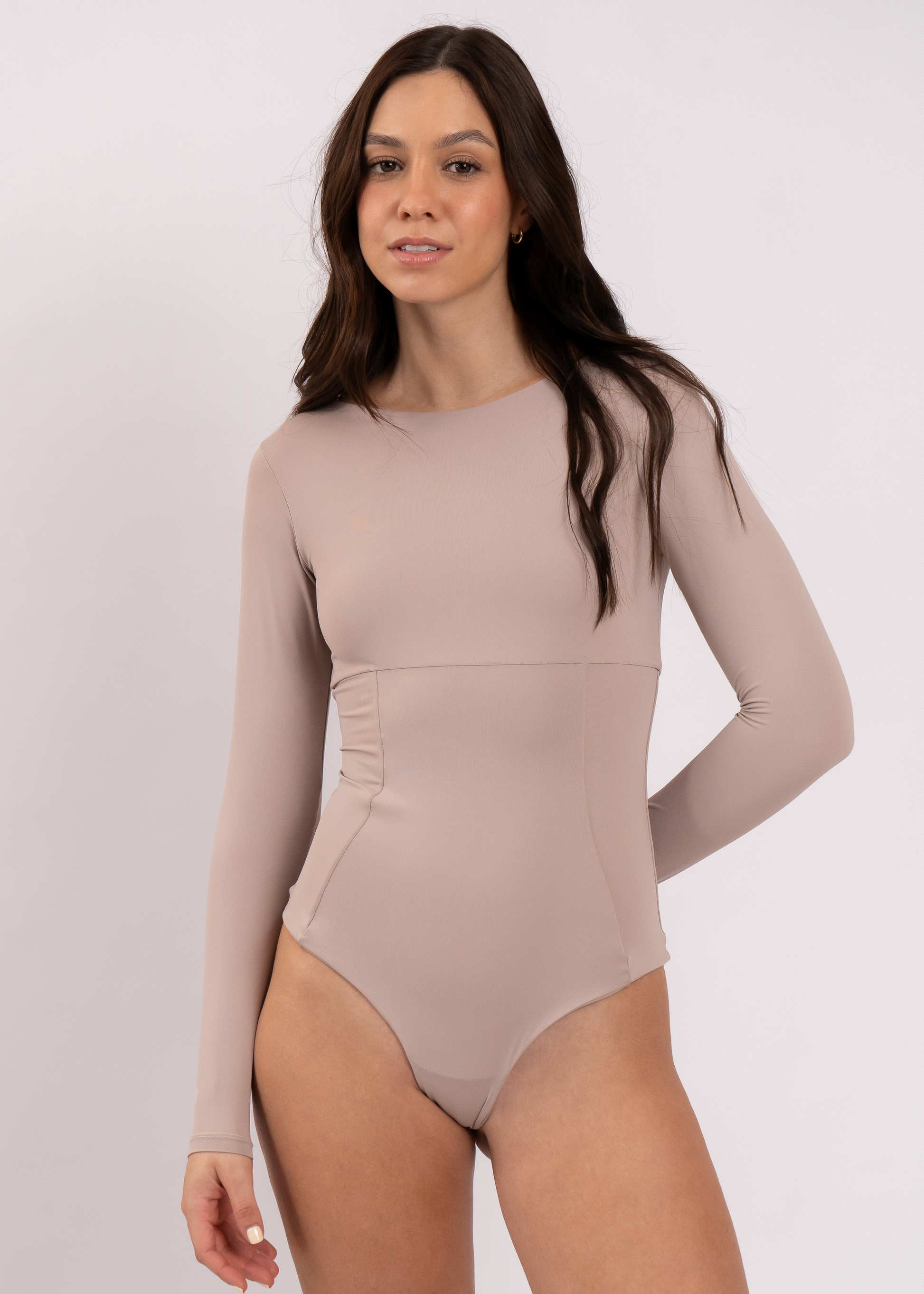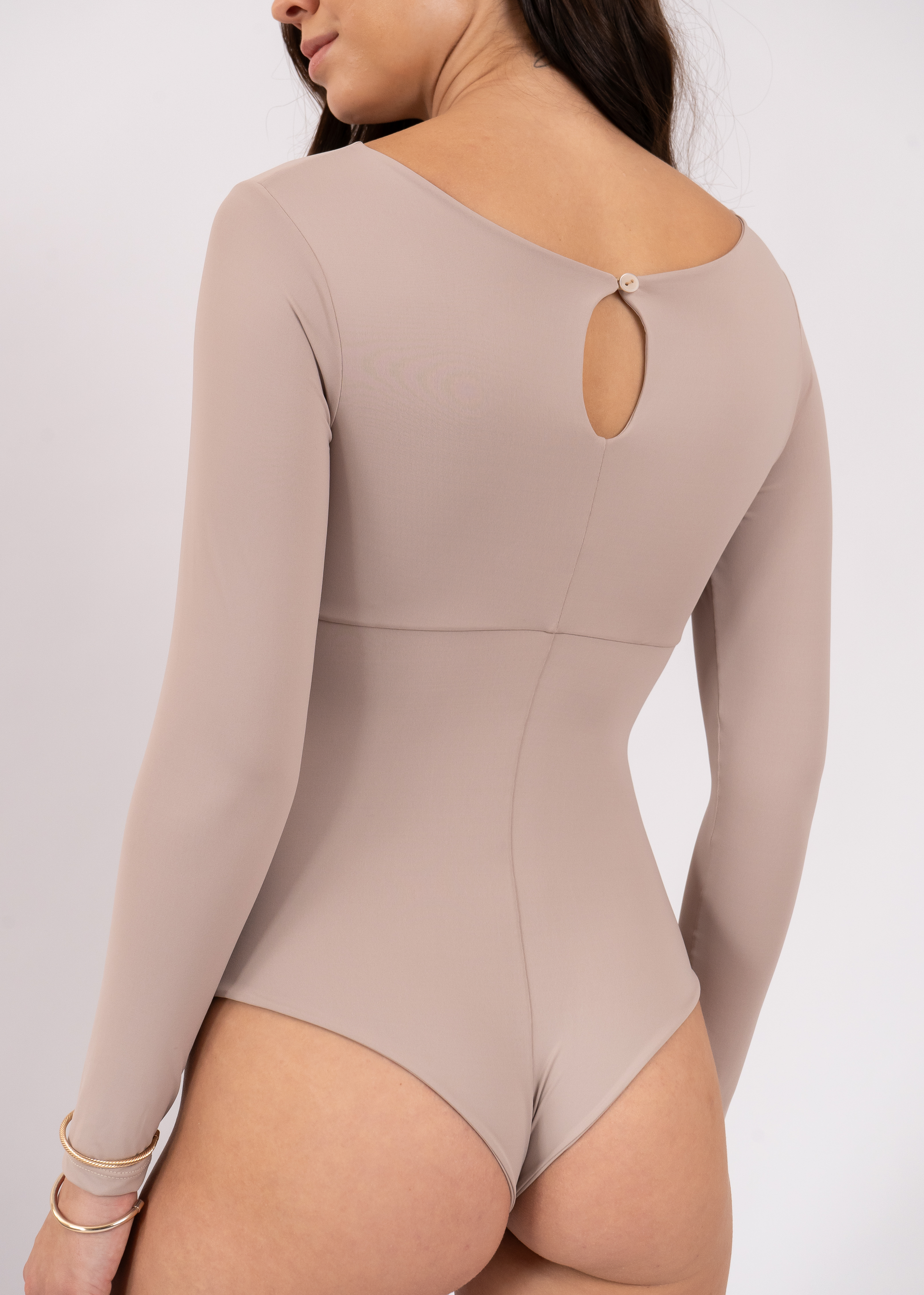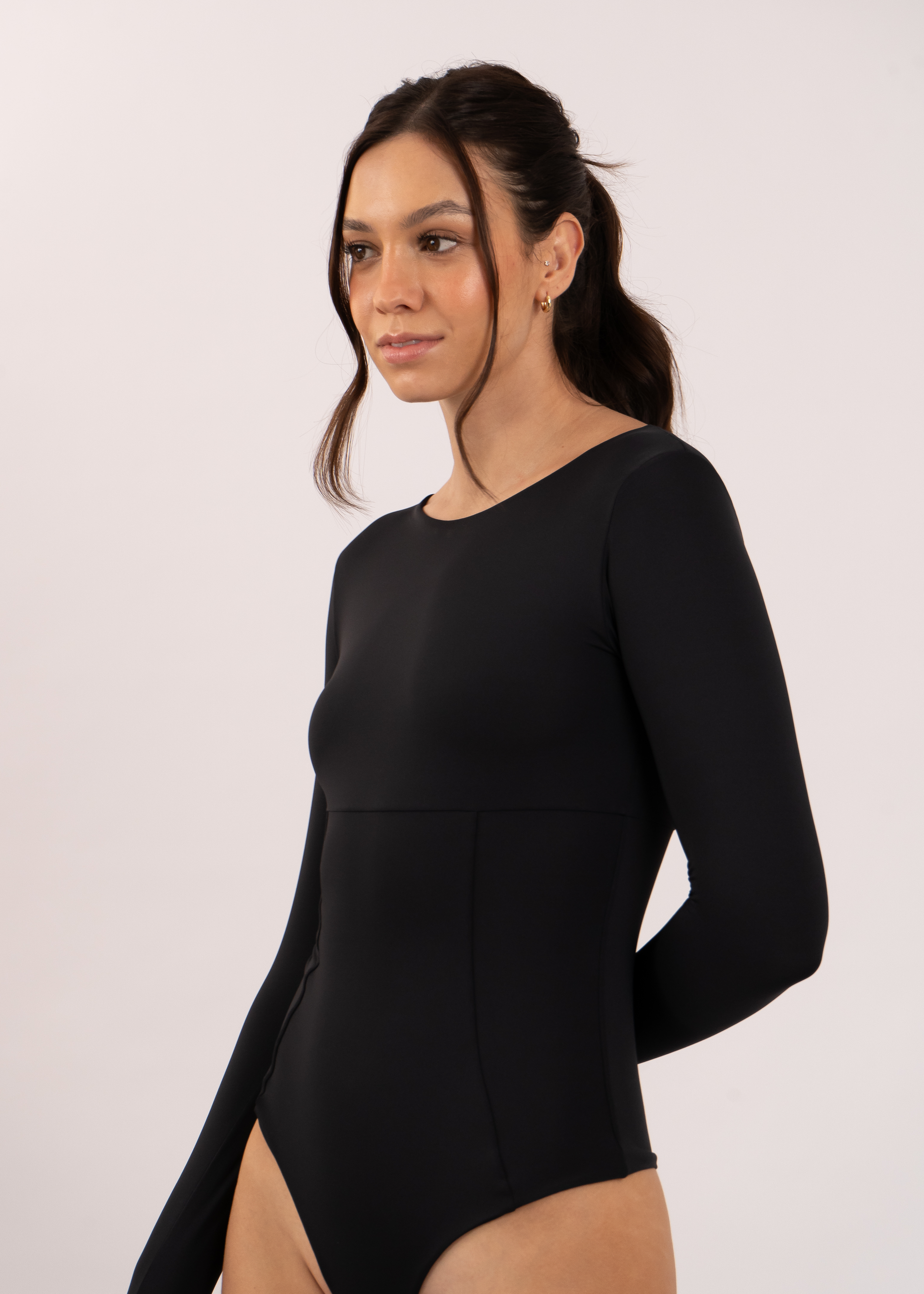 Body manga larga elaborado en doble tela suave que se ajusta perfecto a tu silueta, con cuello redondo y cortes que hacen que la cintura se vea más pequeña y estilizada. Costuras invisibles lo que hace que el tacto de nuestras prendas se sienta como una segunda piel.