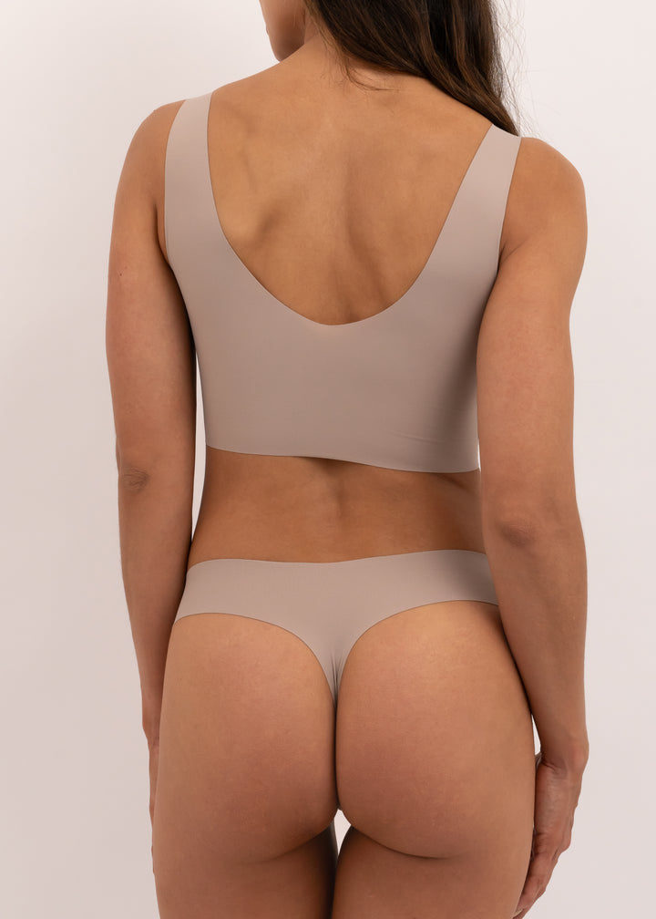 Top invisible con soporte interno y copas removibles, ideal para todo tipo de senos. Esta prenda cuenta con tecnología seamless skin (SK), sin costuras ni elásticos incomodos, de secado rápido y muy suave al tacto con la piel.