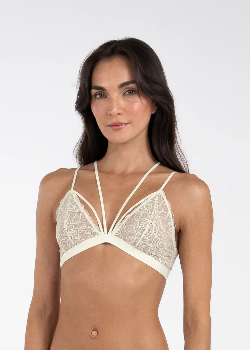 Top Elaborado en encaje, con copa tipo triángulo y cargaderas tiny en hombros y escote que crean un diseño sensual, femenino y perfecto para exteriorizar con tus prendas de vestir.