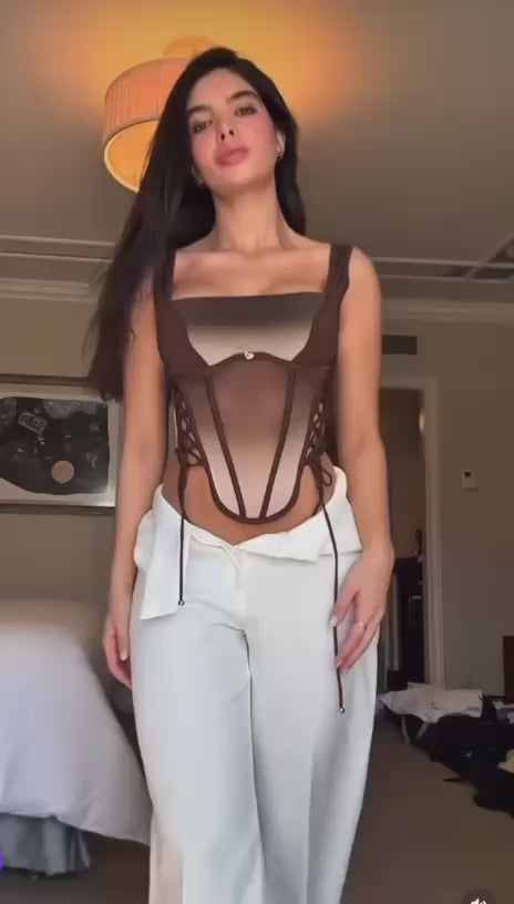 Este corsé Bruma ofrece un diseño estructurado, cuenta con varillas en el busto y abdomen que proporcionan soporte, diseño y moldean la figura.