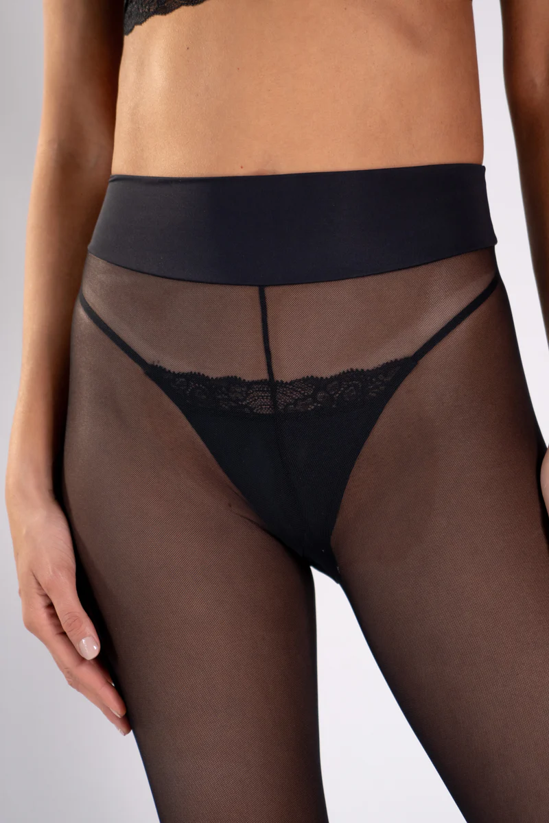 Medias tipo veladas elaboradas en nuestro tul (tela con transparencia de malla) de excelente calidad, la cintura está elaborada en un fajón de nuestra tela suave por lo que no se enrolla, no aprieta, no se marca y da un toque especial de sensualidad a la prenda. Tiene un corte en el posterior, que define el contorno de las piernas y te hará ver ESPECTACULAR.