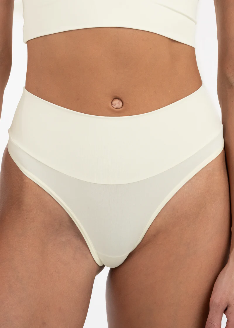 Panty tipo tanga elaborado en tela suave. Es una prenda de talle alto que estiliza y suaviza las curvas naturales de la mujer conservando y resaltando su sensualidad.