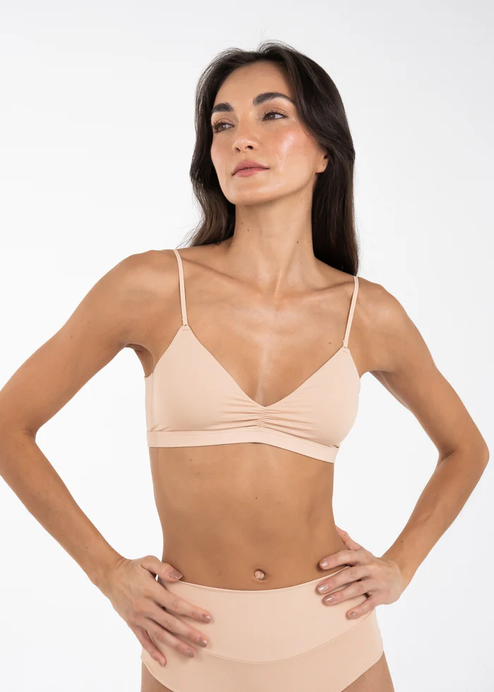 Top elaborado en tela suave con copas internas removibles. Escote con recogido en parte delantera que se adapta perfecto a tu busto, cargaderas tiny y diseño cuadrado en espalda para adaptar a camisas o vestidos con escote profundo. Tiene excelente soporte y cobertura.
