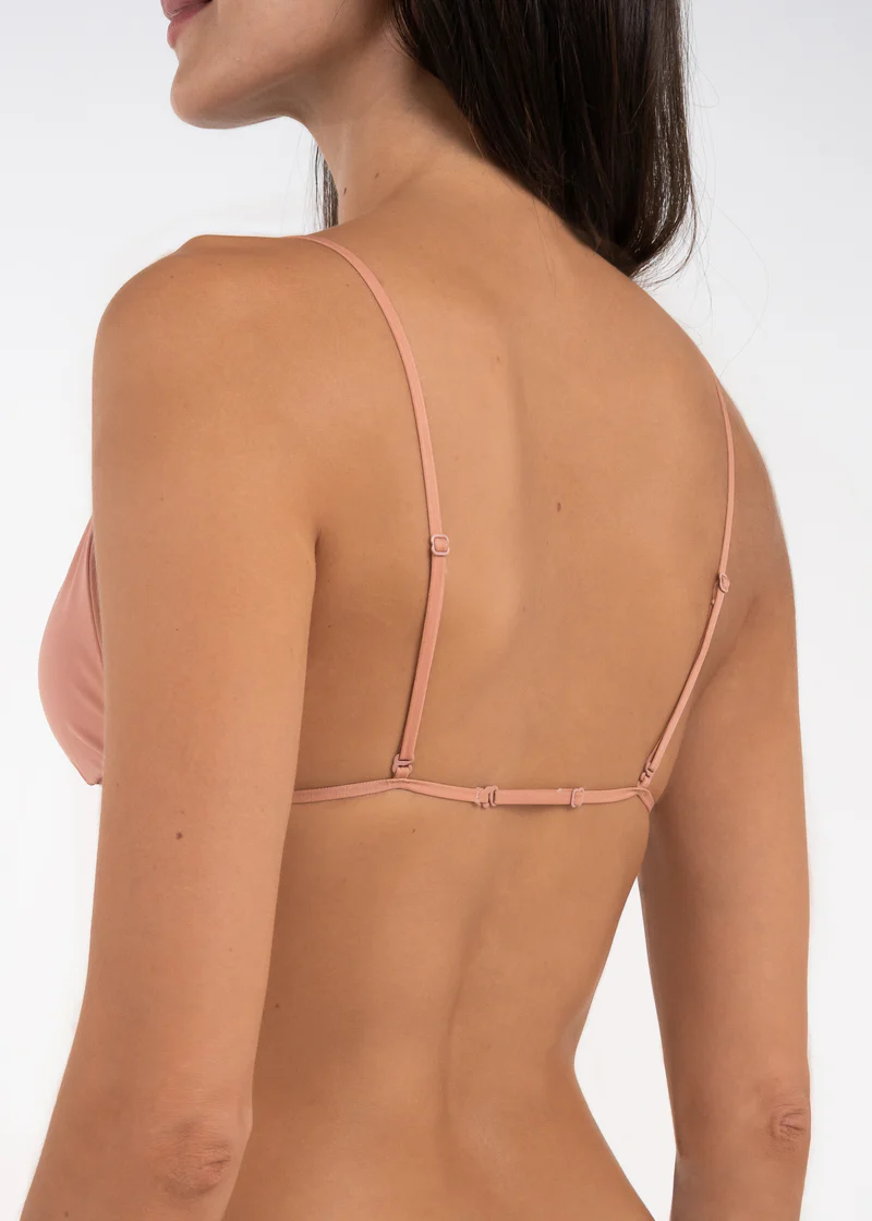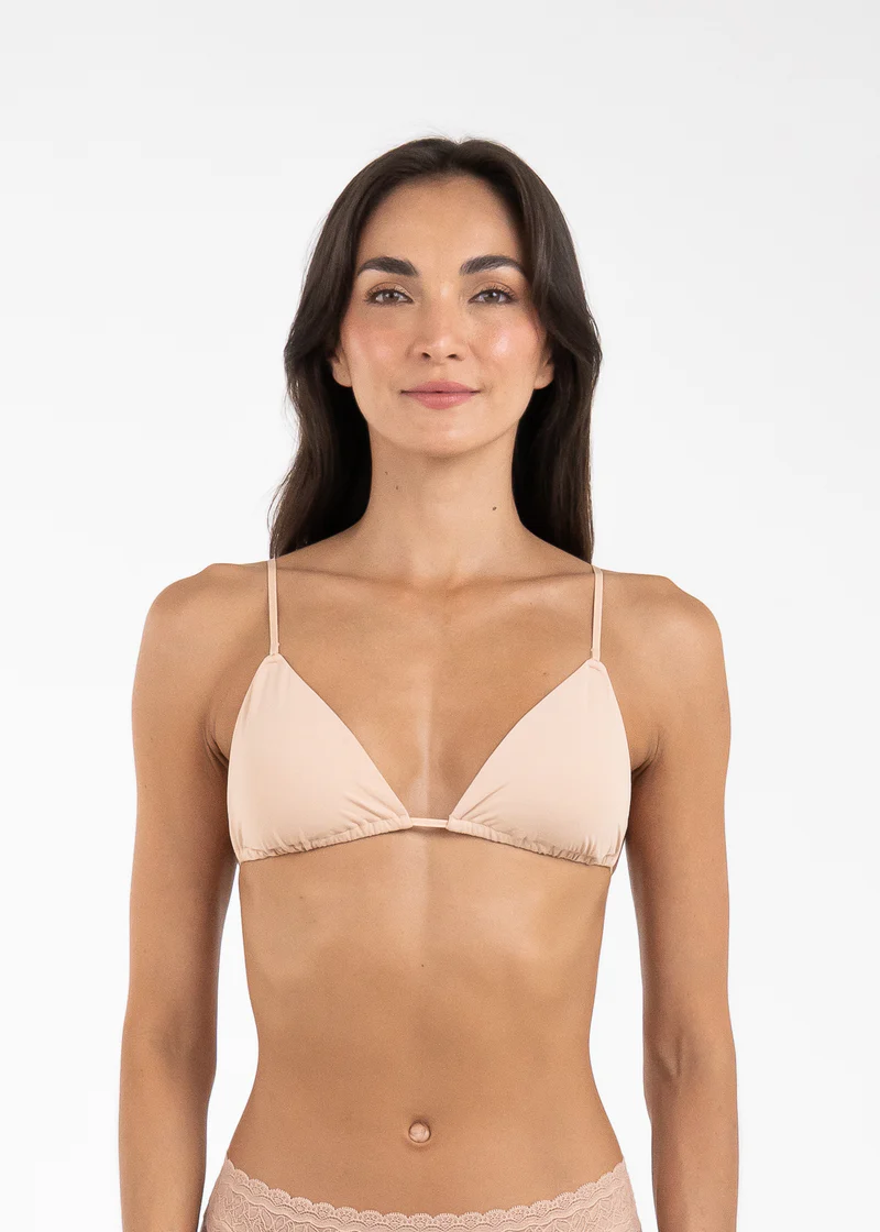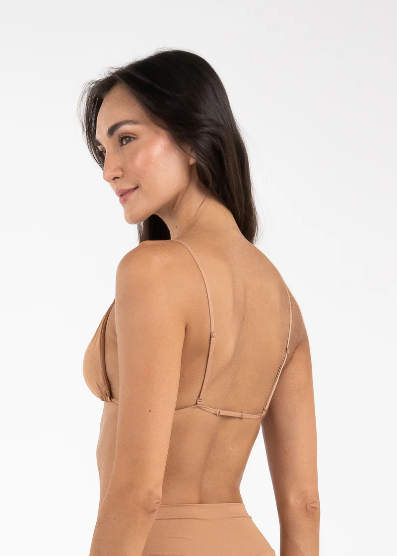 Top con copas tipo triángulo, copas internas removibles y tiras muy delgadas con diferentes ajustes, lo que hace que sea perfecto para blusas con escote. Es una prenda con soporte mediano.