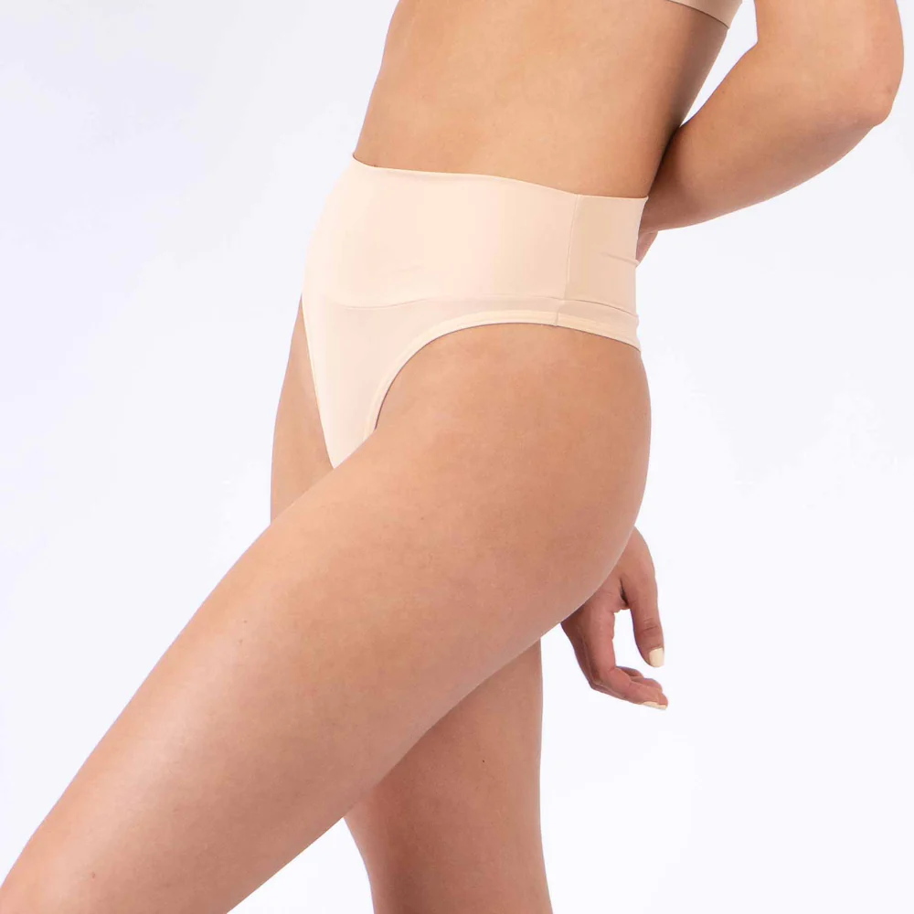 Panty tipo tanga elaborado en tela suave. Es una prenda de talle alto que estiliza y suaviza las curvas naturales de la mujer conservando y resaltando su sensualidad.