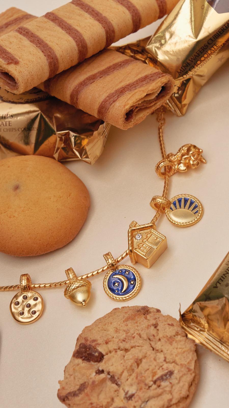 - 6 charms, 1 pulsera, 1 par de candongas